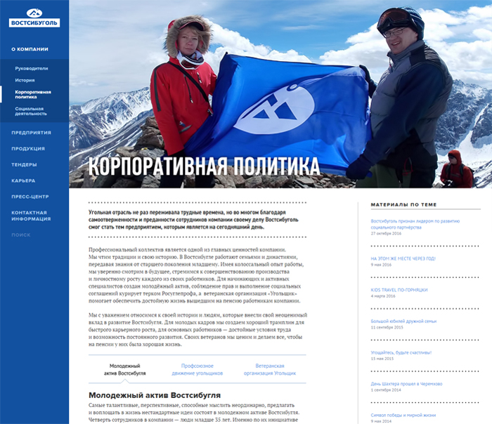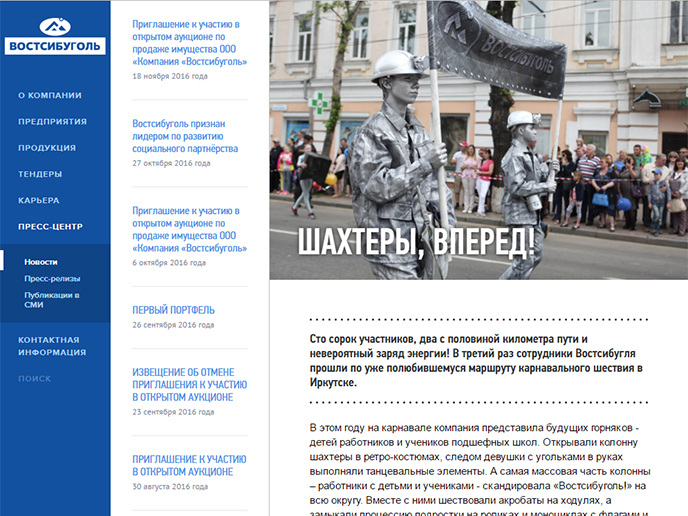 Для крупнейшего угольного предприятия Восточной Сибири мы разработали удобный и современный корпоративный сайт