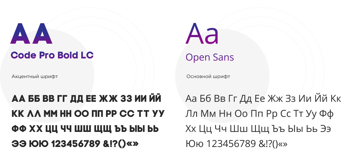 Акцентный шрифт применяется для заголовков, что также способствует узнаваемости компании. Основной шрифт — хорошо читаемый, привычный для пользователя.