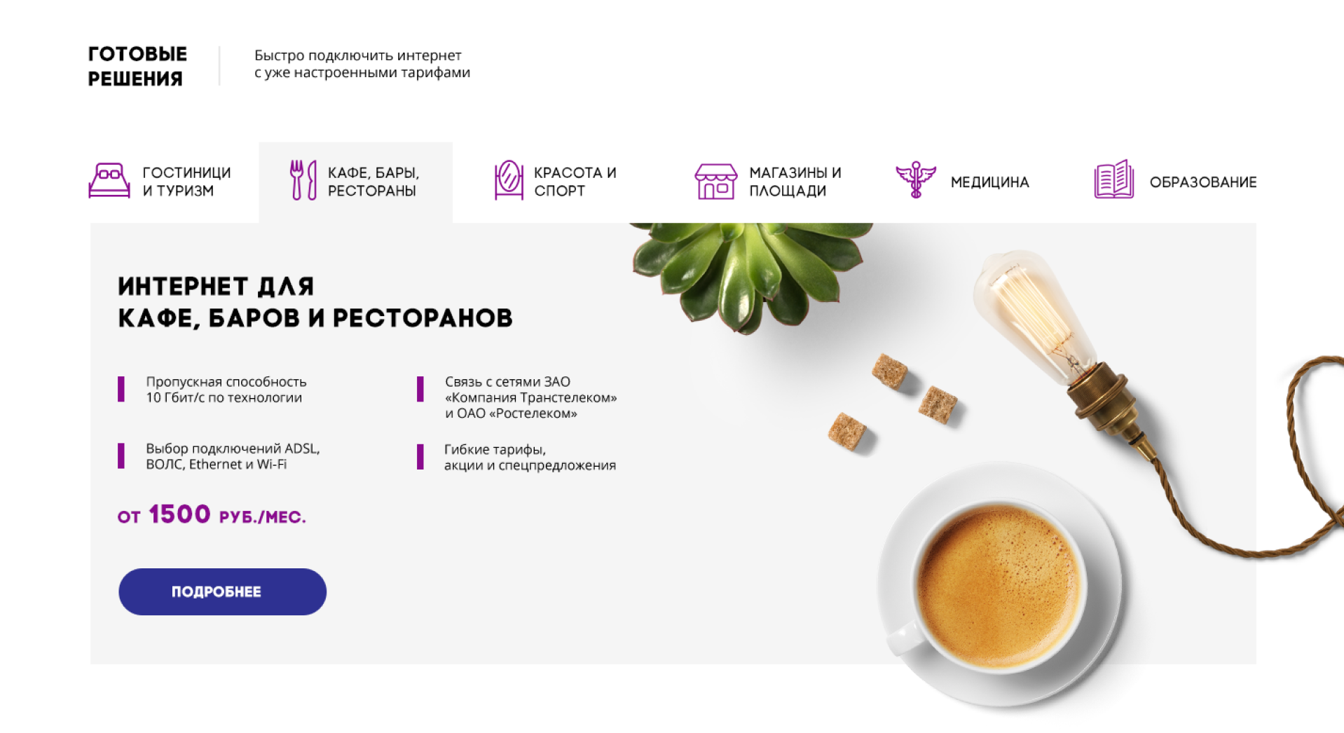 Разработку мы начали с проектирования дизайн-системы. Проработали базовые стили и на их основе создали полный набор элементов для сайта. Большим плюсом такого подхода является то, что проект можно масштабировать, соблюдая единую стилистику бренда.После релиза основного сайта был успешно проведен редизайн остальных проектов клиента — личного кабинета пользователя и сайта для услуги «Видеонаблюдение».